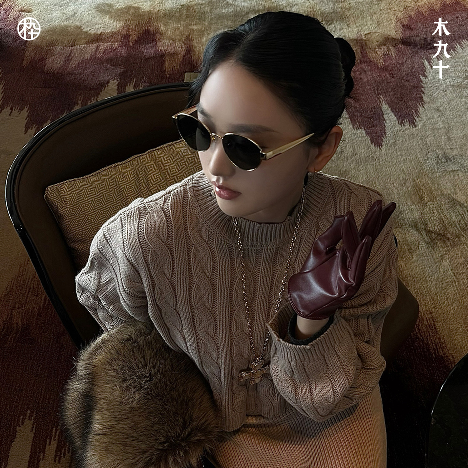 墨镜男女MJ12SM1610 木九十太阳眼镜老钱风椭圆框偏光金属潮流时尚由