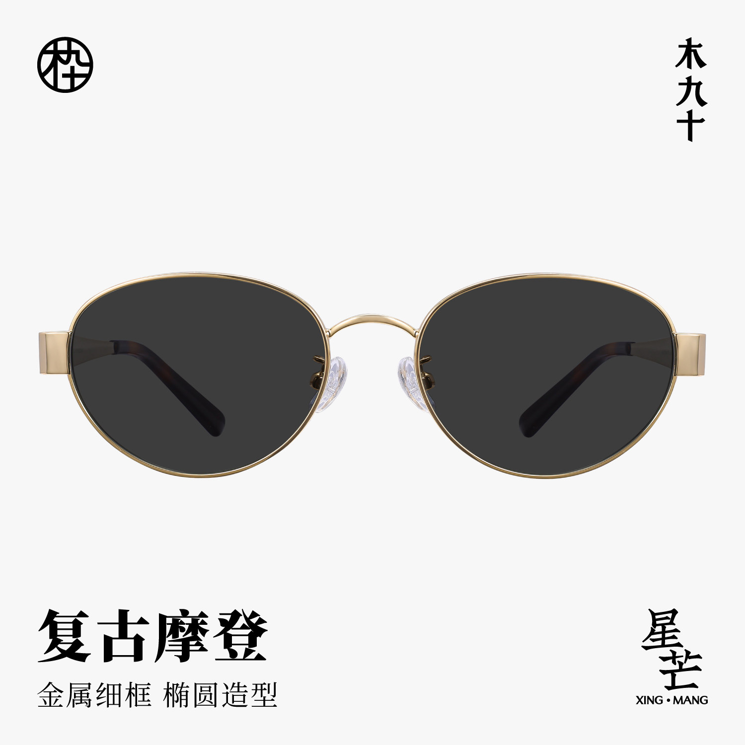 墨镜男女MJ12SM1610 木九十太阳眼镜老钱风椭圆框偏光金属潮流时尚