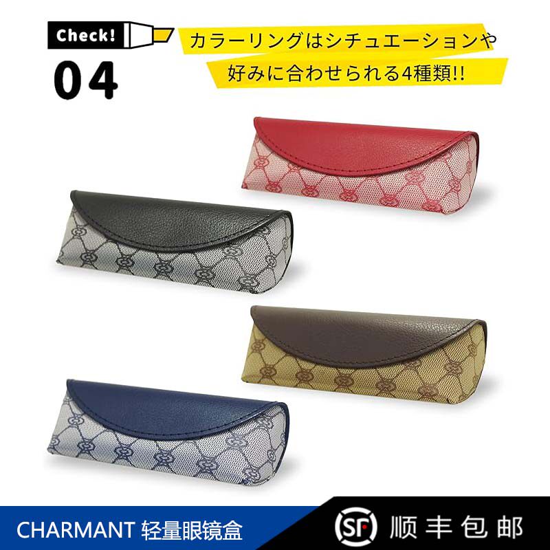 日本进口CHARMANT夏蒙轻量半硬复古花押眼镜盒便携高品质磁吸式