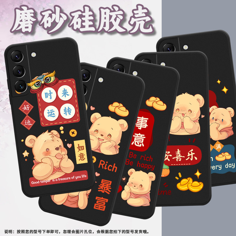 S901B磨砂壳GalaxyS22吐舌头 小熊超薄好运满满防摔 平安喜乐全包边SM 适用三星S22手机壳S22Plus保护壳S22