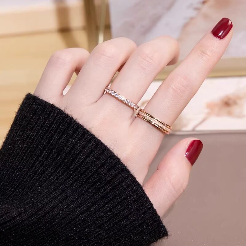 饰品指环 素圈锆石戒指女轻奢小众设计高级感叠戴食指戒精致超美装