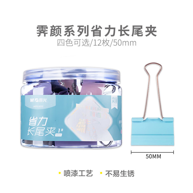 为您提供商品晨光文具1号长尾夹霁颜系列省力票夹50mm彩色夹子ABS916Y5 包邮的详细介绍,
