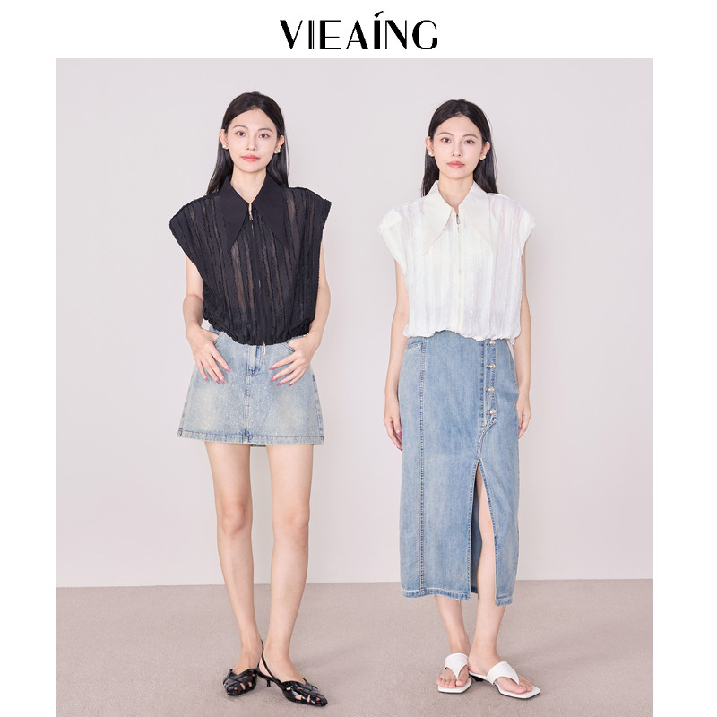 为您提供商品通勤休闲小个子短款 VIEA.ING薇迎黑色衬衫 女2026夏季 新款 上衣 无袖的详细介绍,