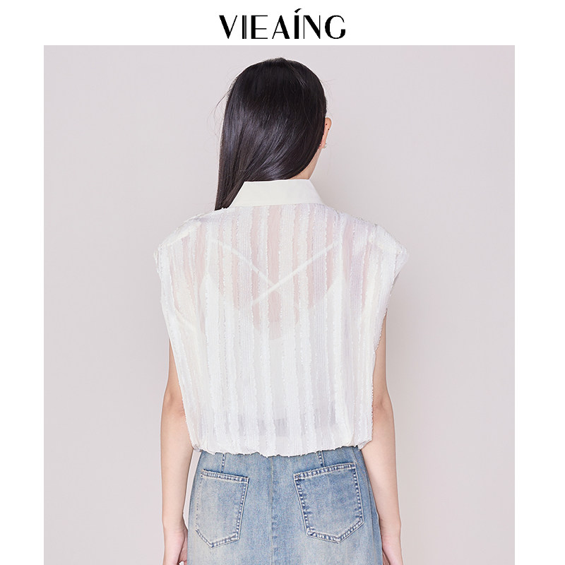 通勤休闲小个子短款 VIEA.ING薇迎黑色衬衫 女2026夏季 新款 上衣 无袖由