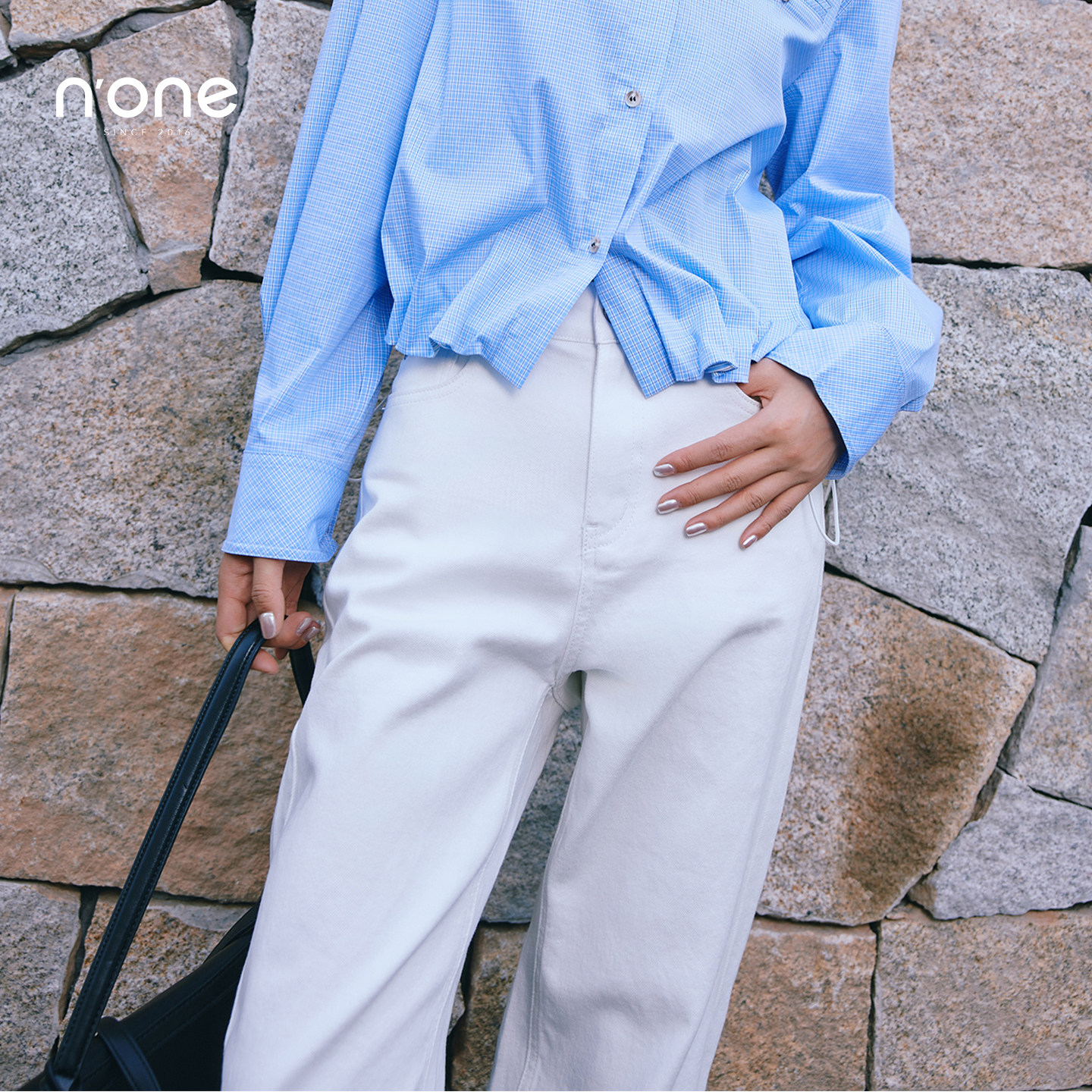巨好看休闲气质百搭裤 none 子 新款 女秋季 白色窄版 直筒牛仔裤