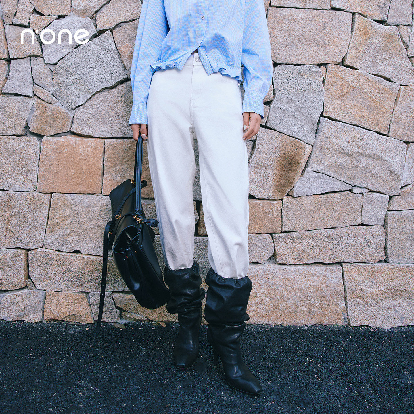 橘子树在哪儿白色复古直筒牛仔裤 款 高腰宽松垂感拖地阔腿裤 女春季