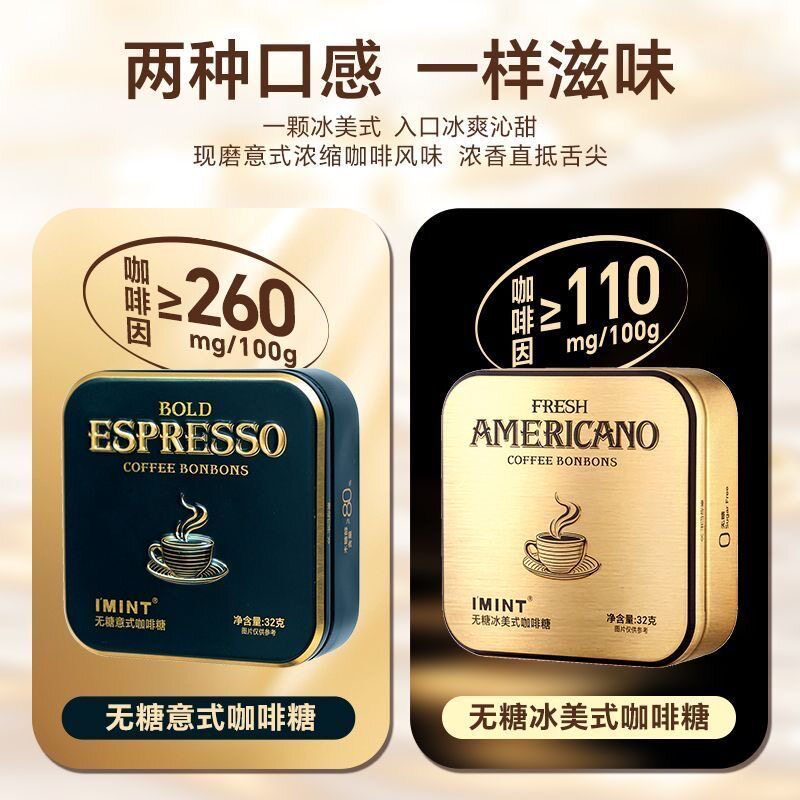 imint无糖冰美式 咖啡糖浓香犯困清凉木糖醇黑金特浓咖啡糖果 意式由