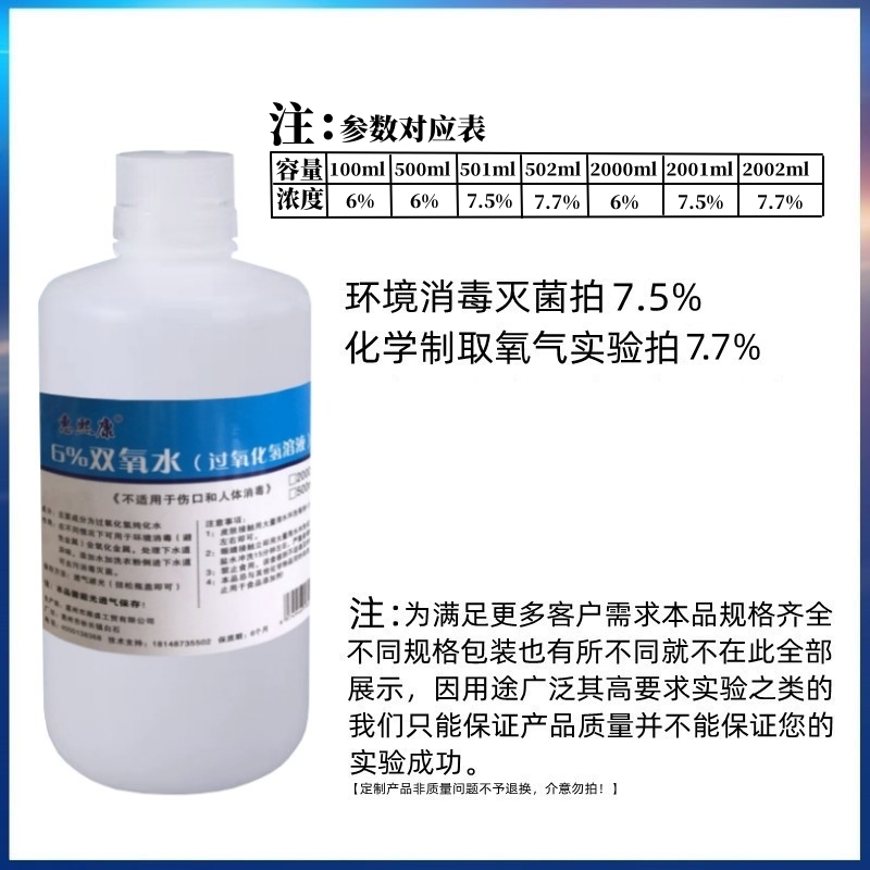 7.7%过氧化氢化学实验用学校制取氧气双氧水消毒液高浓度物品漂白