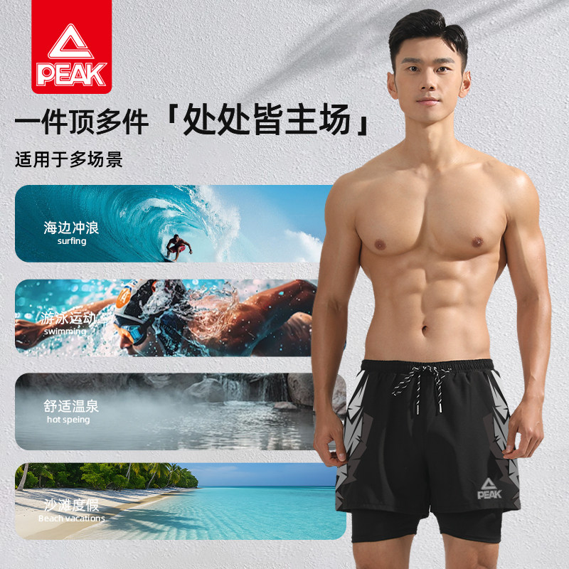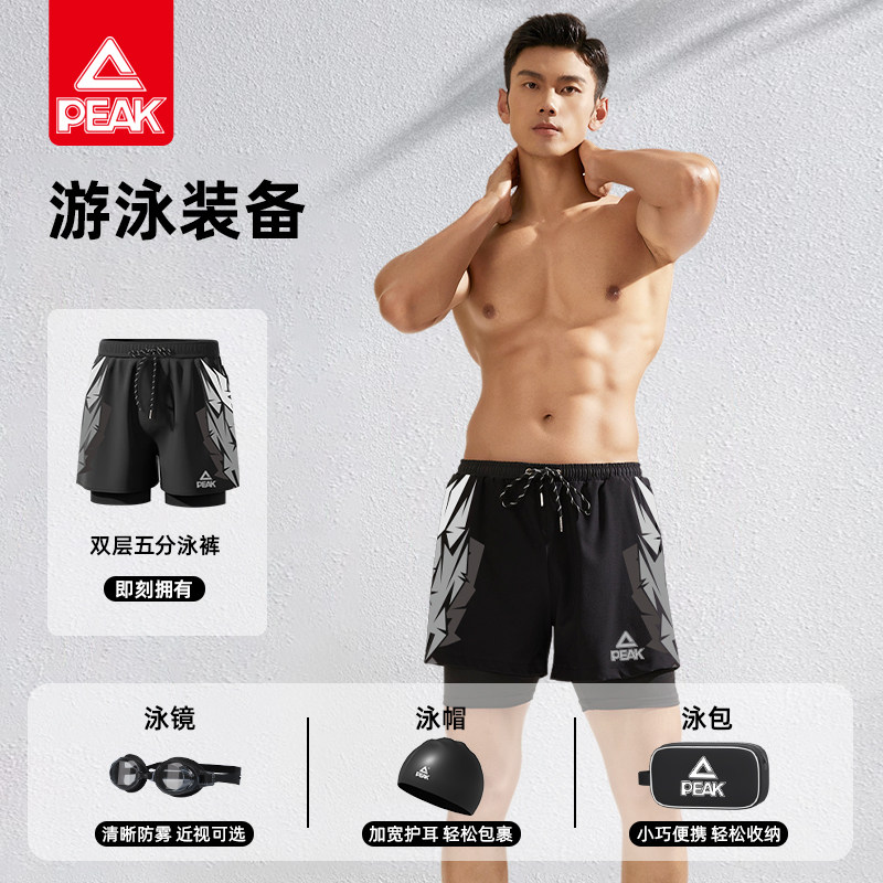 成人游泳装 匹克游泳裤 备 防尴尬沙滩裤 泳帽泳镜三件套男款 男士 泳裤由