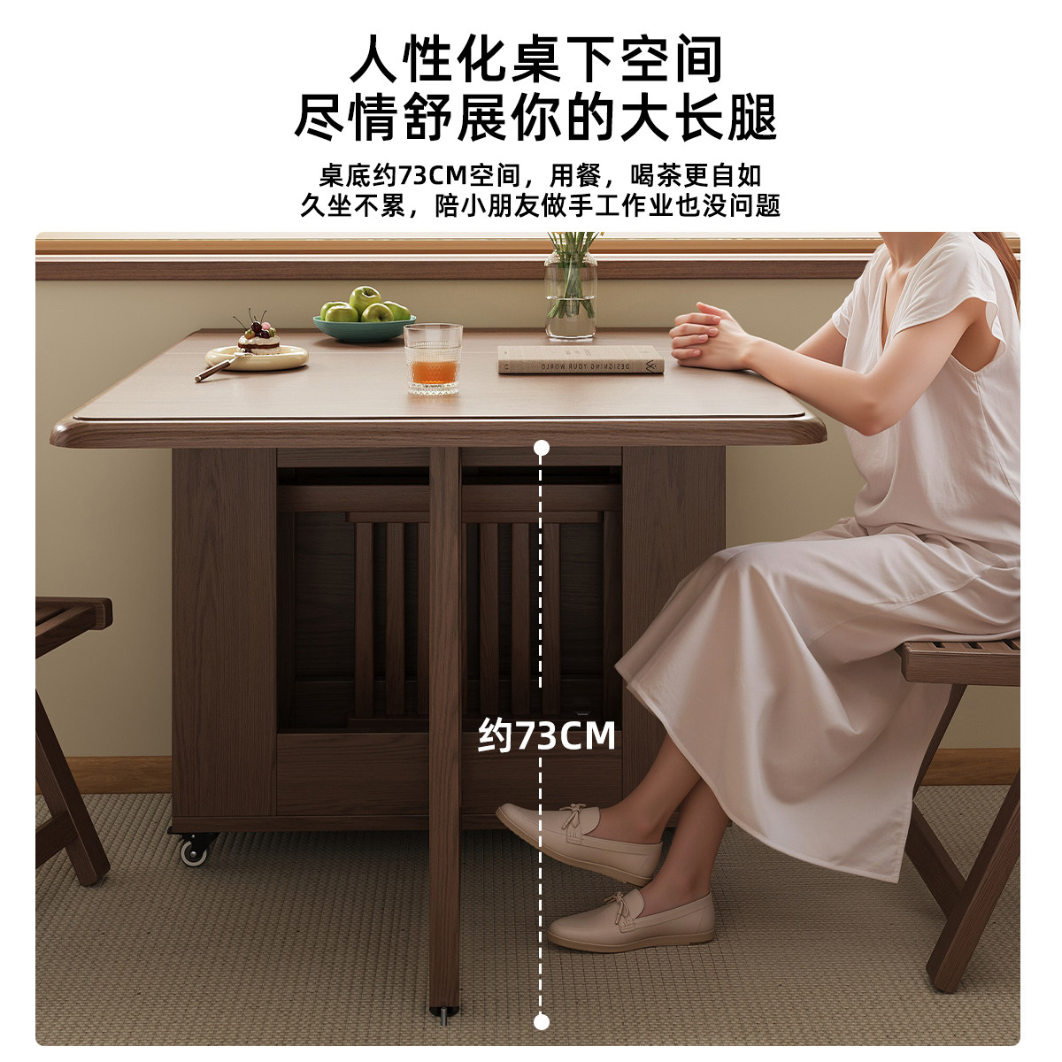 实木饭桌长方形 实木折叠餐桌家用小户型餐桌中古风餐桌椅2026新款由