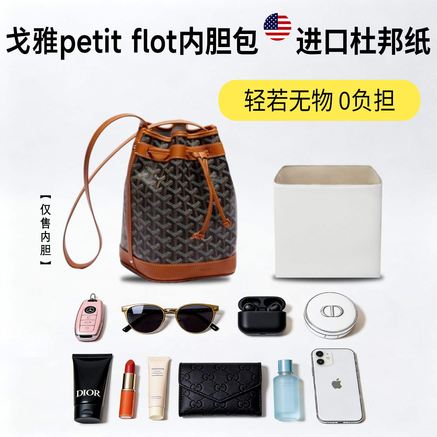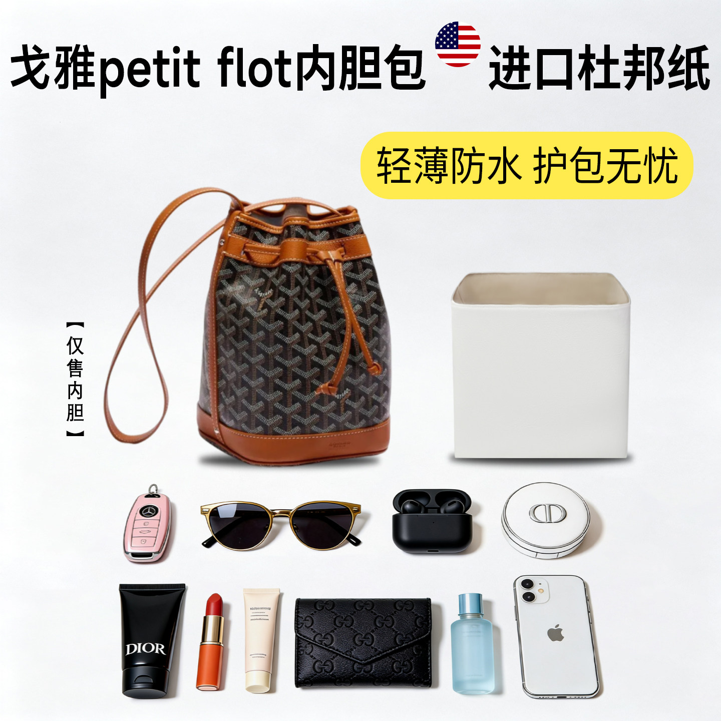 flot水桶包狗牙杜邦纸内胆包轻薄防水内衬袋 适用goyard戈雅petit由