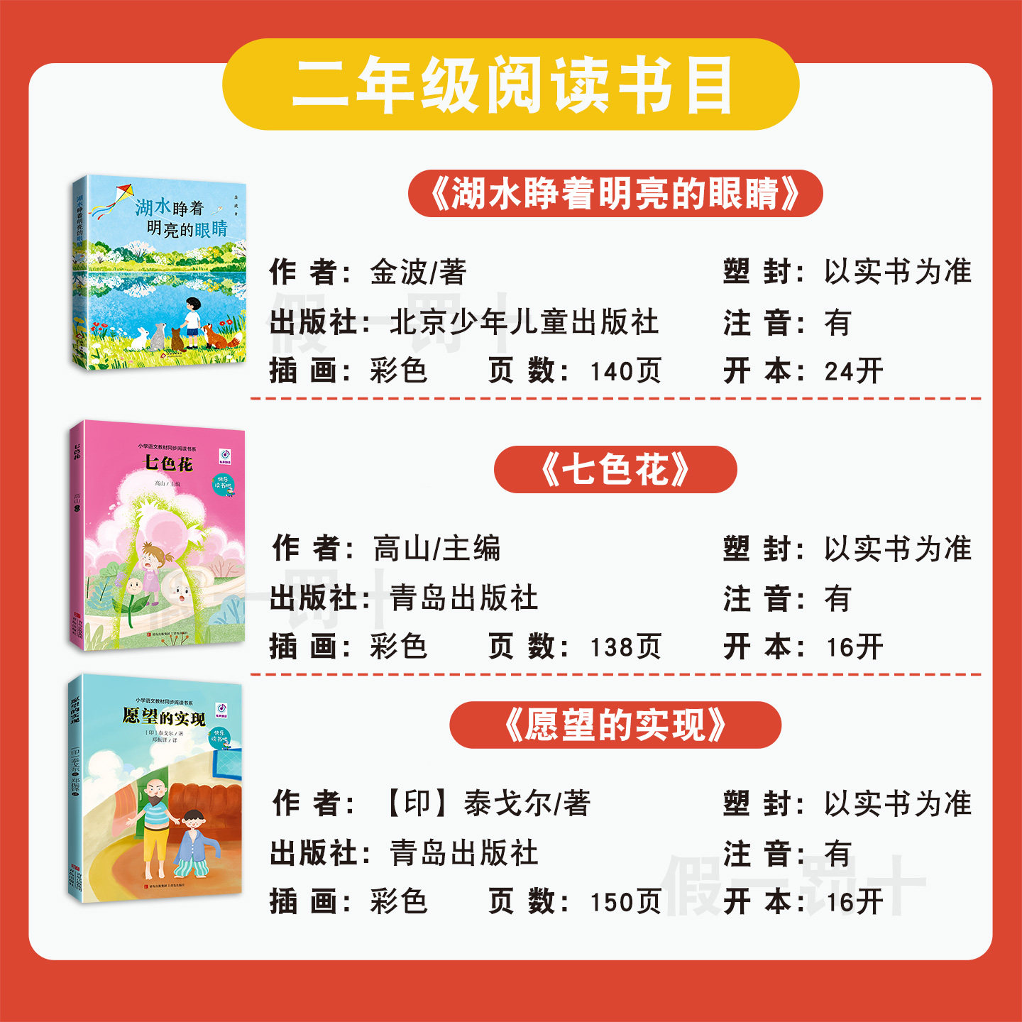 实现 新书 26寒假整本书共读 愿望 二年级课外阅读书目 全套三本二年级阅读书籍正版 眼睛 七色花 湖水睁着明亮由
