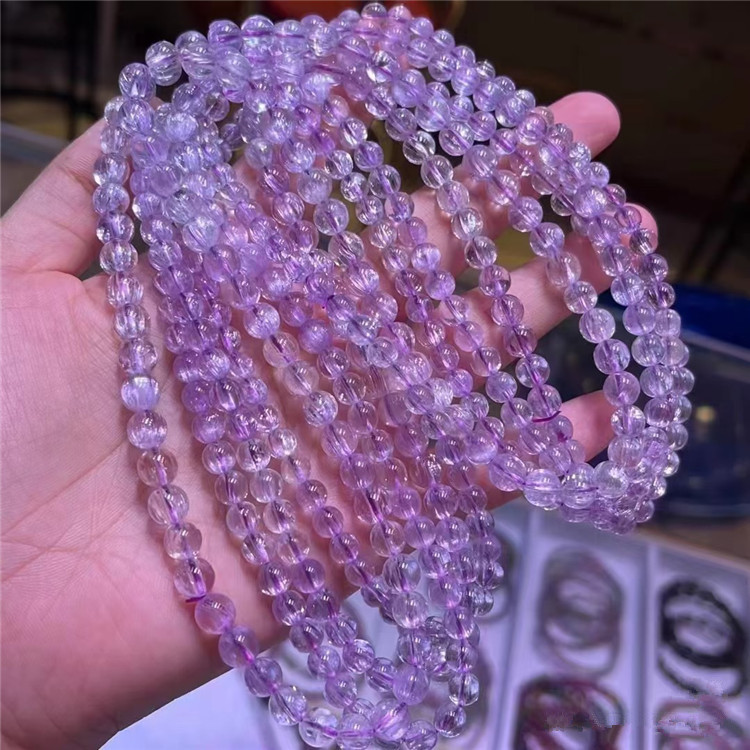 女款 淡紫色水晶饰品 手链 天然冰透拉丝猫眼料紫锂辉圆珠三圈款