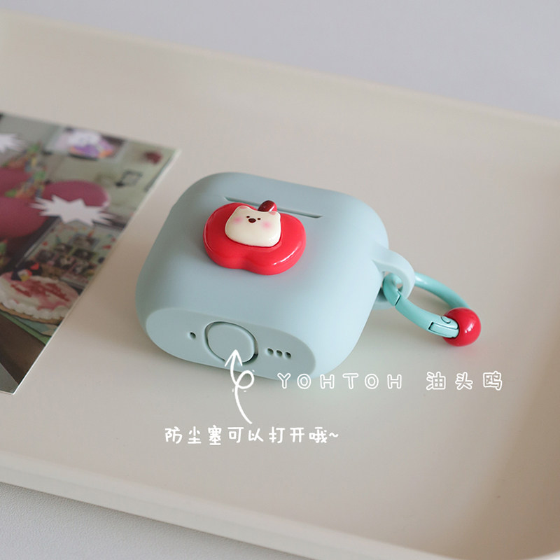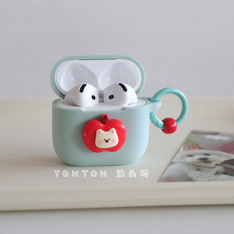 原创立体红苹果狗适用于AirPodsPro2代耳机壳airpods4无线蓝牙耳机保护套1 ipod3连体a2190硅胶pro软 2代新款