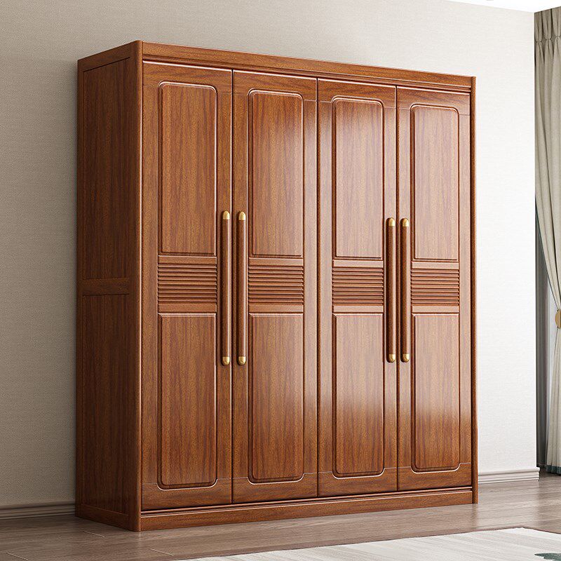 平开门大容量收纳储物柜 全实木衣柜家用卧室胡桃木大衣橱现代中式