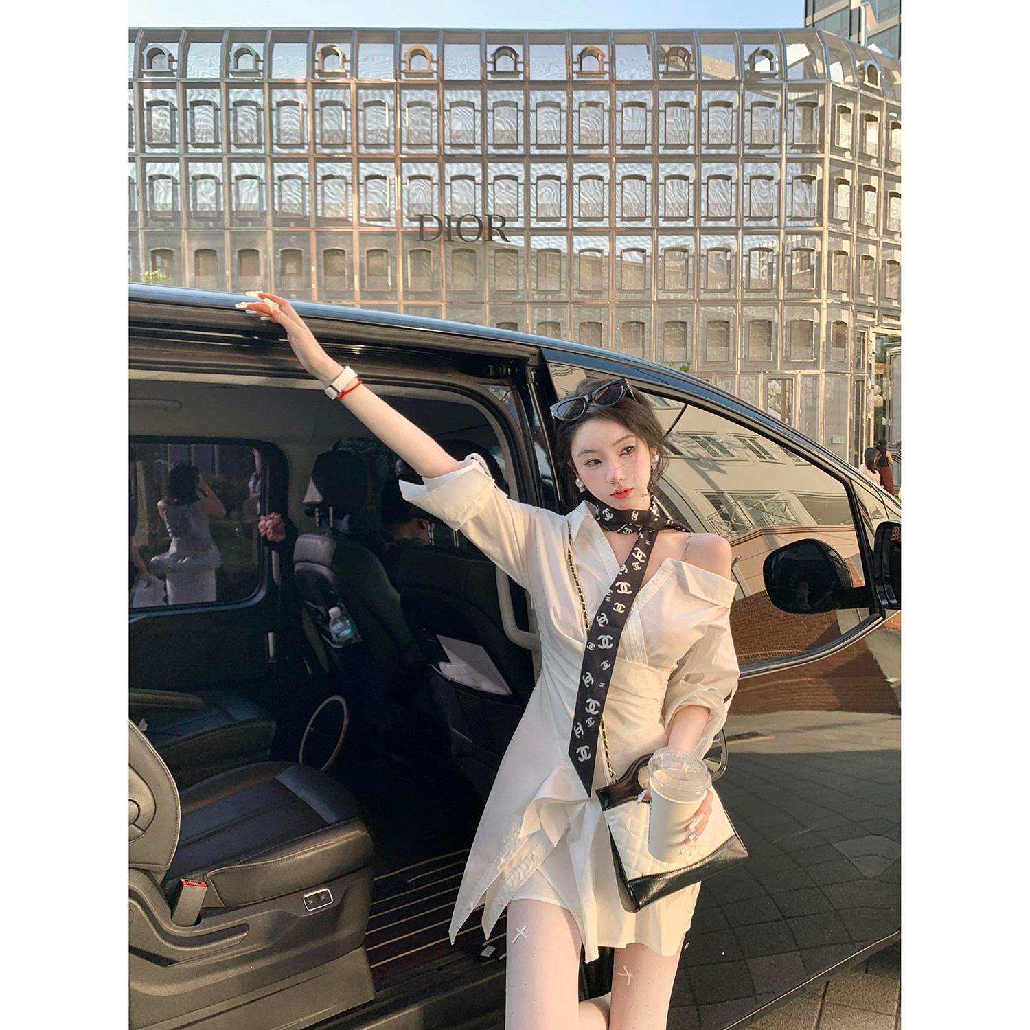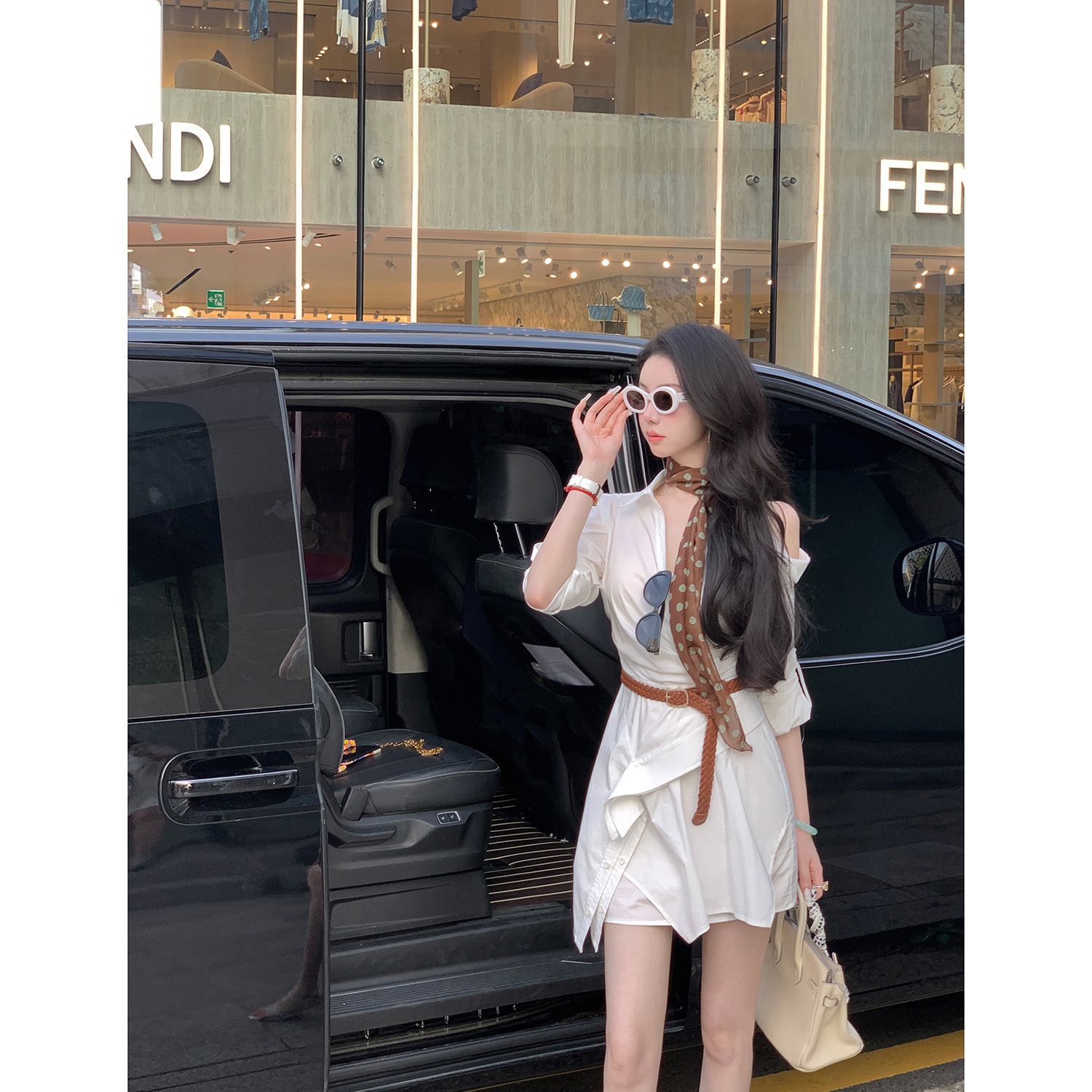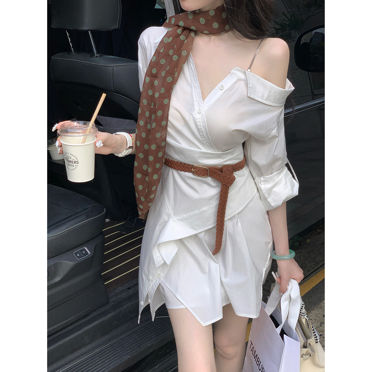 本不对称斜肩衬衫 Sun雅乔 摩登时尚 双版 连衣裙短裙 收腰长袖