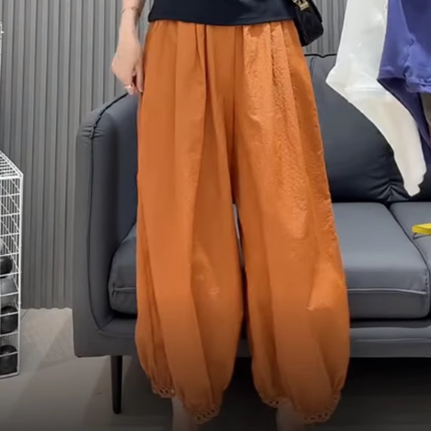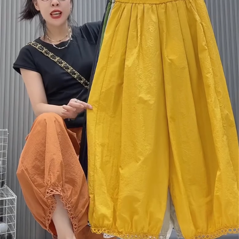 为您提供商品新款 韩版 冰丝宽松蕾丝花边灯笼裤 女2026夏季 设计感纯色高腰休闲裤的详细介绍,