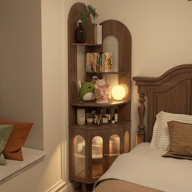 转角置物架一体靠墙客厅沙发中古风90度拐角角柜卧室角落收纳柜子