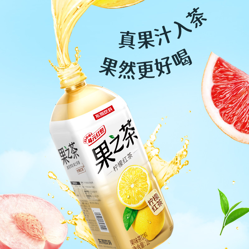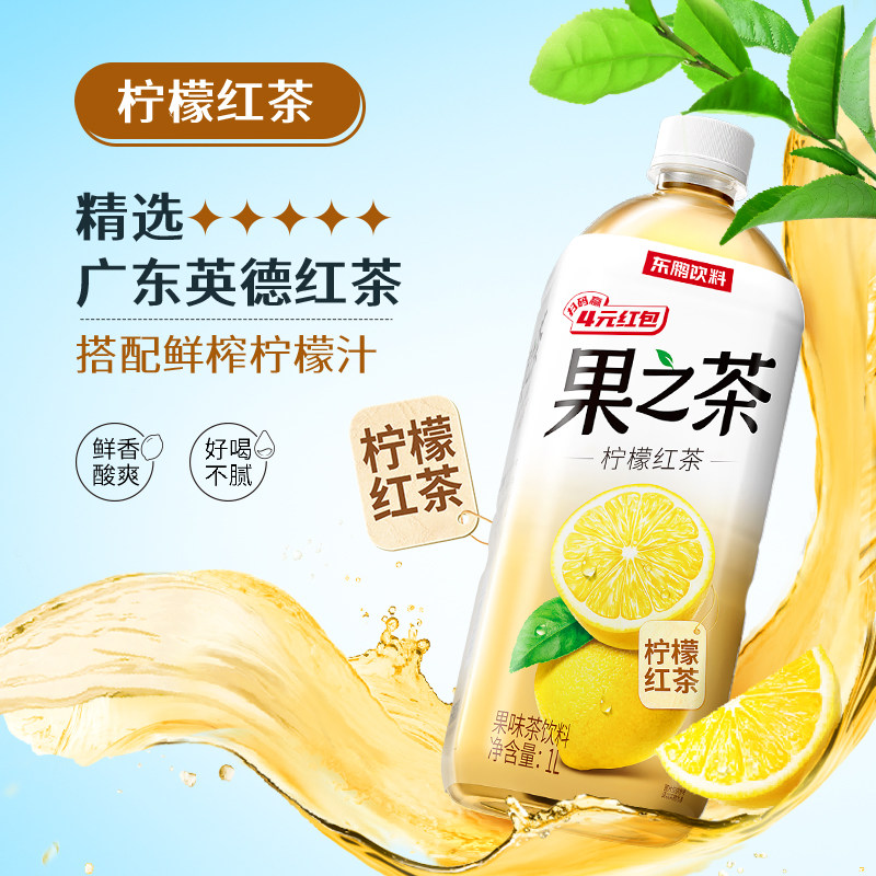 东鹏饮料果之茶果味茶饮料1L 12瓶整箱柠檬红茶蜜桃乌龙实惠装由
