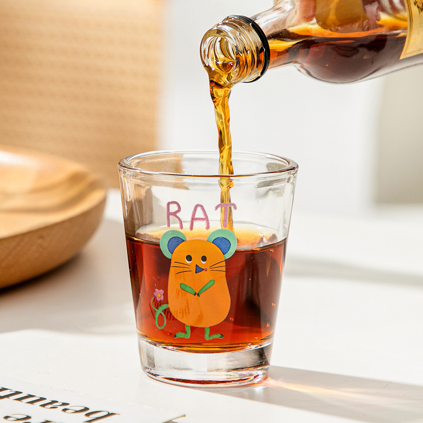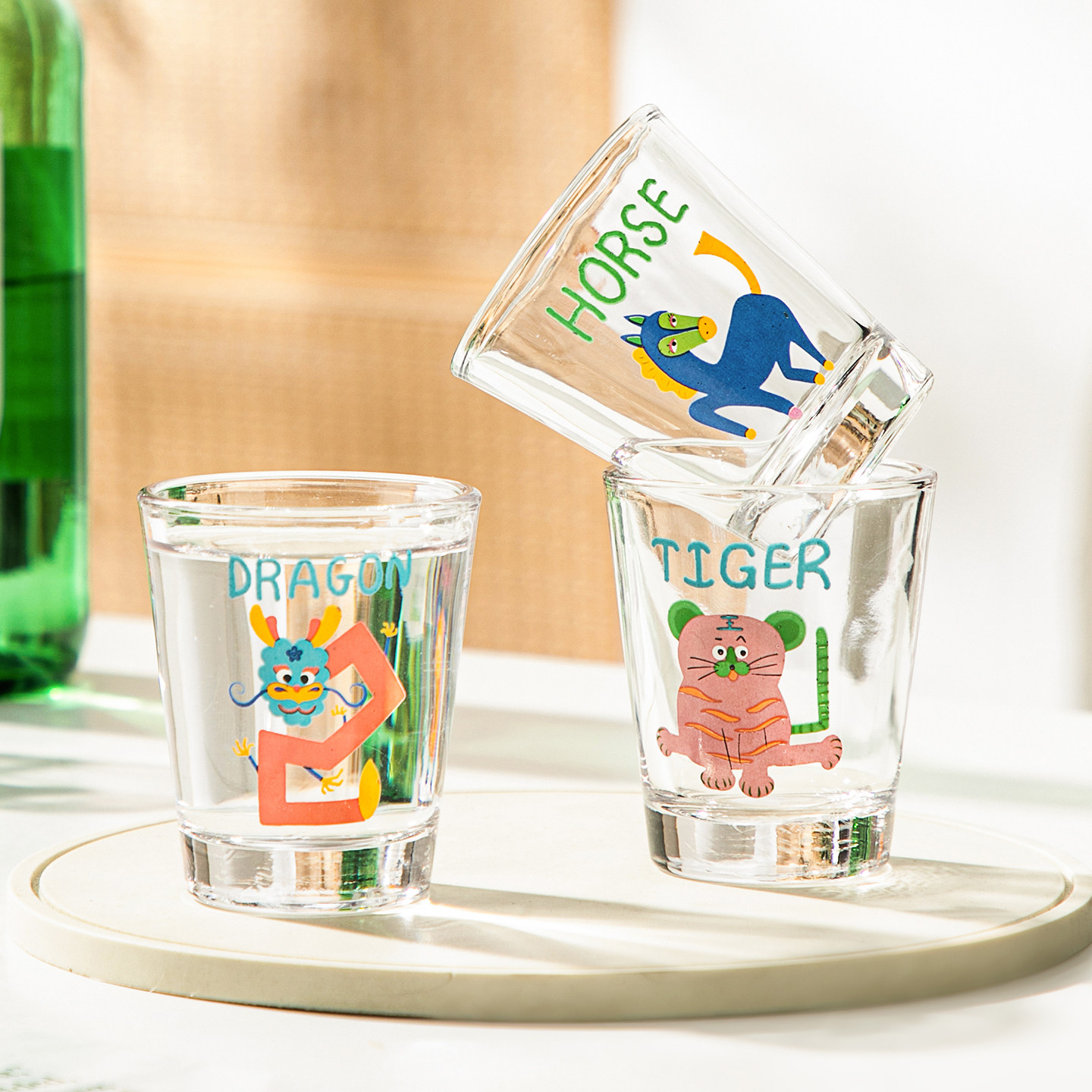 家用玻璃一口杯shot杯烧酒白酒杯子 onlycook十二生肖小酒杯礼盒装