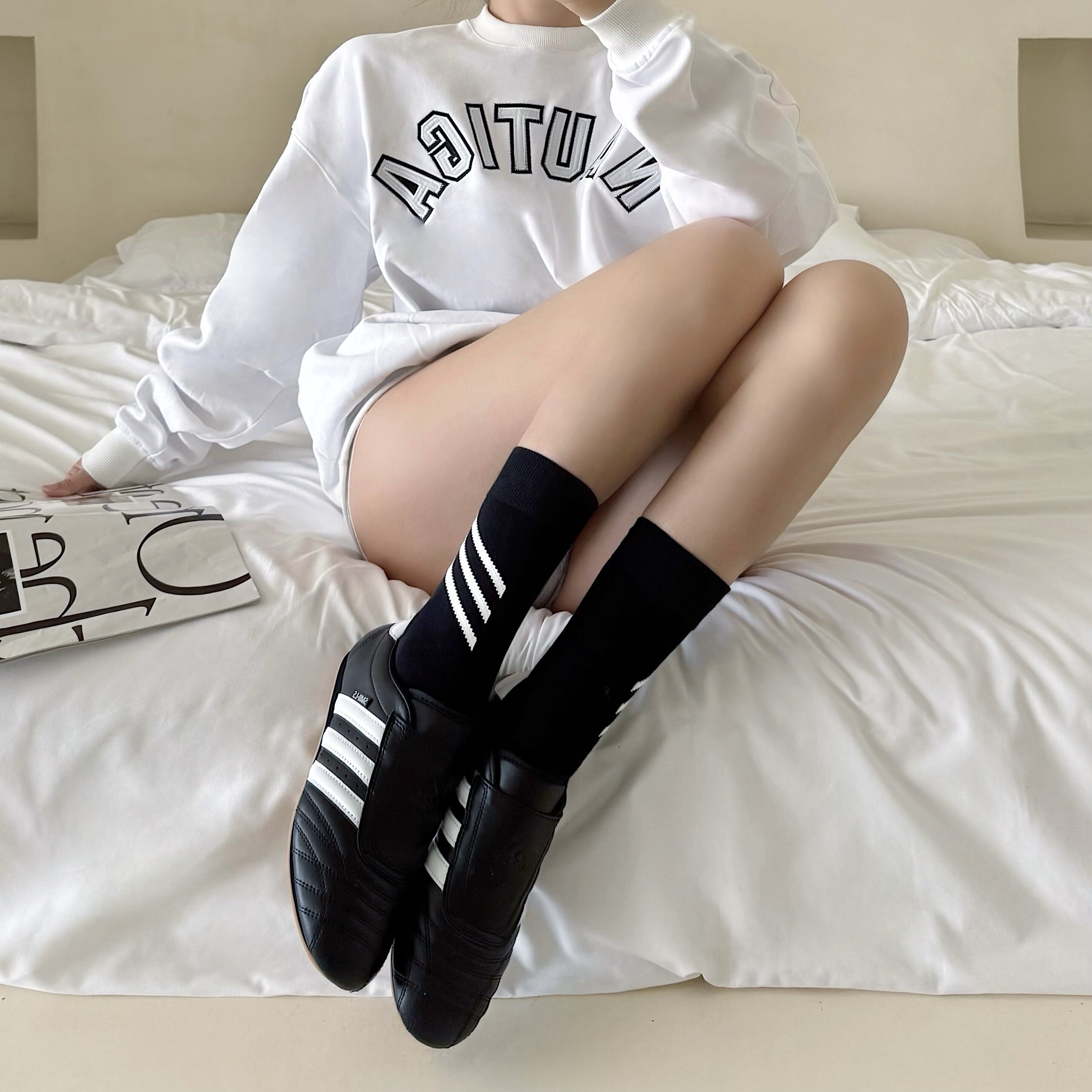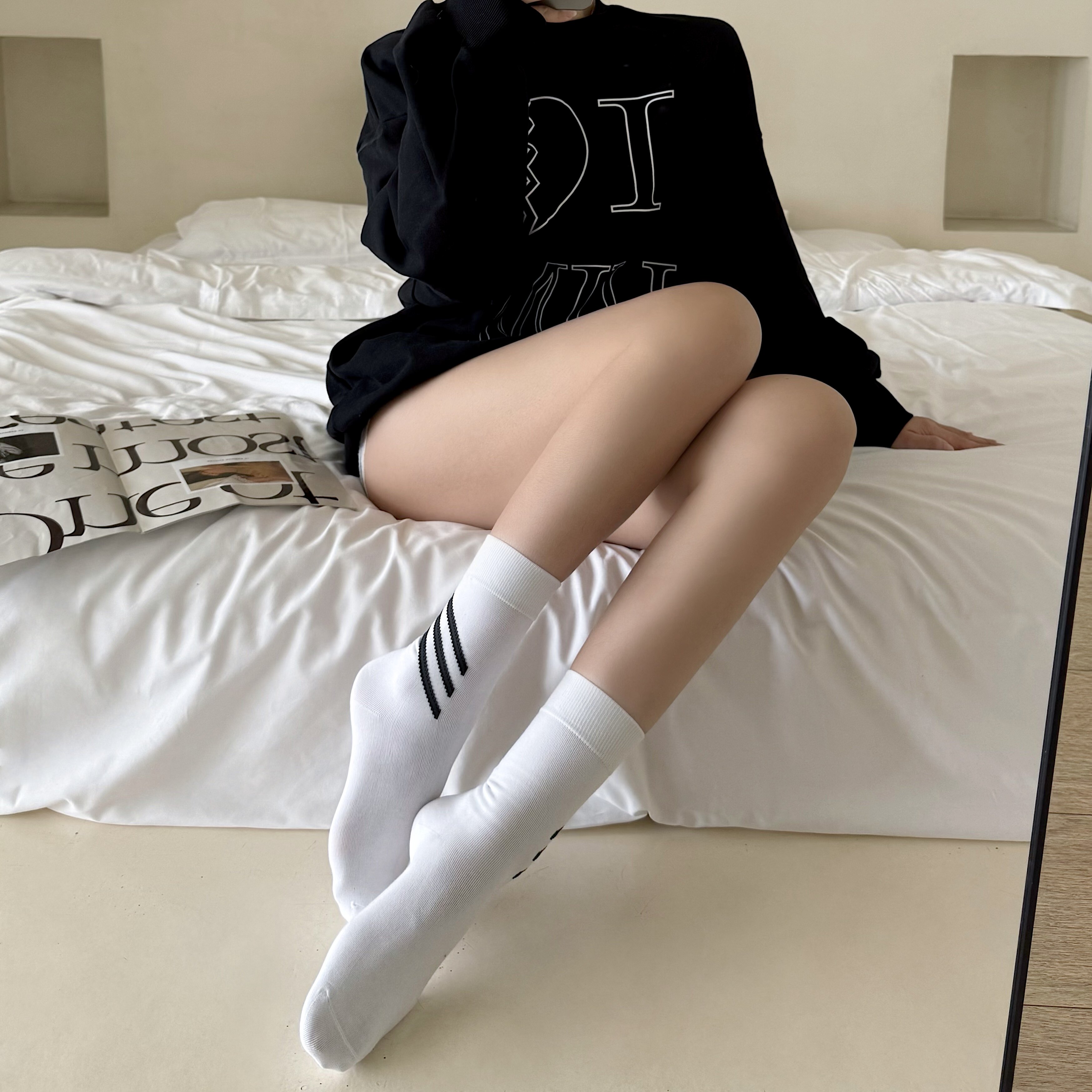 白色堆堆袜子女款 中筒纯棉黑色女士无骨2026新款 爆款 月子袜 夏薄款