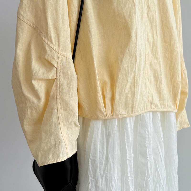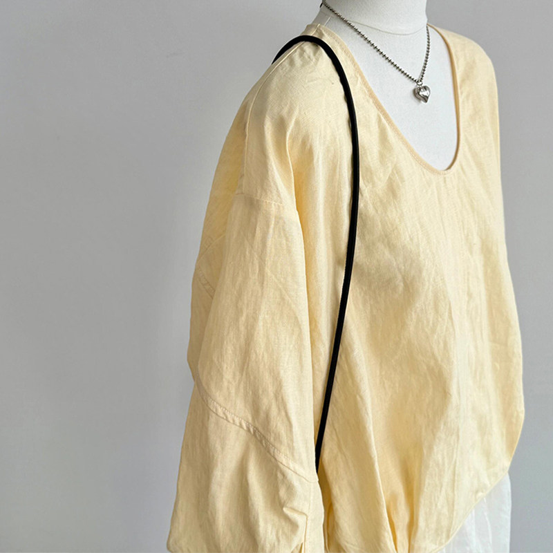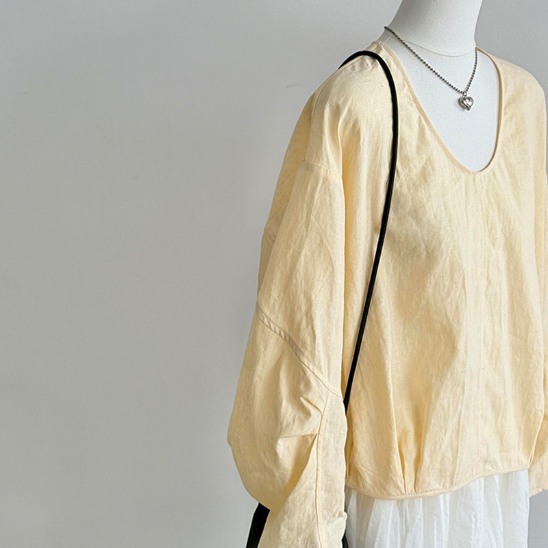 韩版 牛X货 巨炸裂 夏日清凉 女 浅黄色U领显颈线条轻盈透气灯笼袖