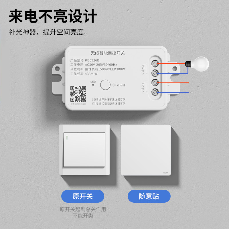 奥克斯无线遥控开关接收器模块220v免布线随意贴家用灯智能开关贴由