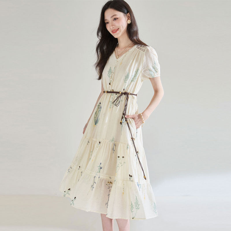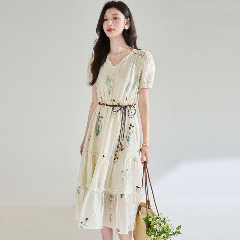 为您提供商品复古刺绣天丝短袖 中长裙气质度假风裙子 连衣裙女夏25新款 迪奥法式的详细介绍,