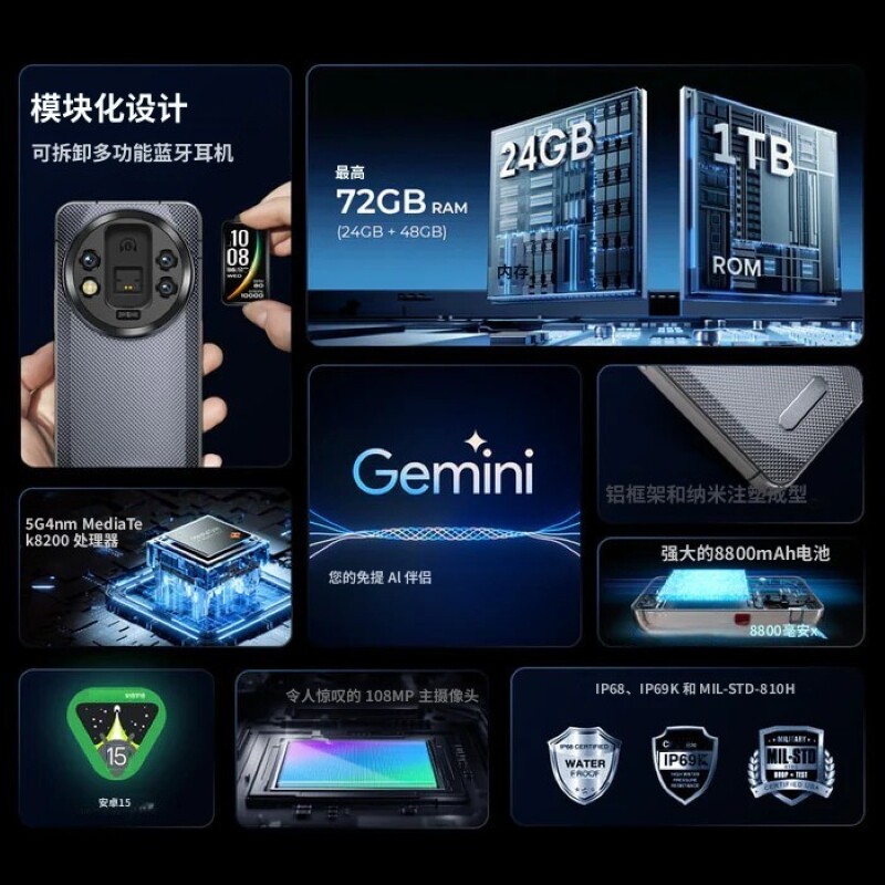 1TB内存 可拆卸蓝牙手表5G三防手机 OUKITEL欧奇WP200Pro全球首款由