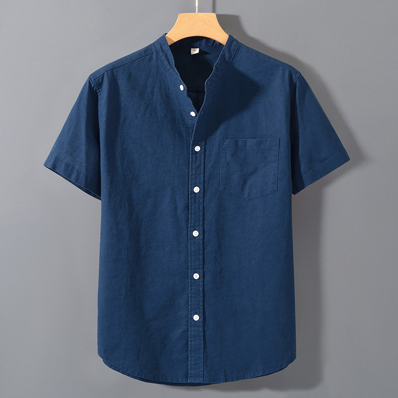 男立领休闲上衣薄款 夏季 中国风亚麻短袖 衬衫 棉麻衬衣 宽松青年半袖