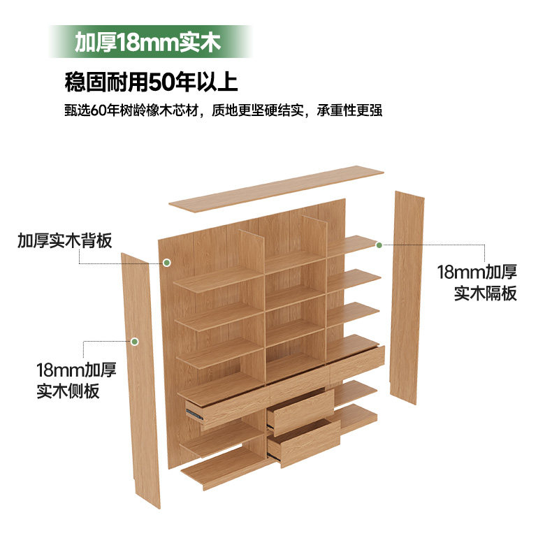 为您提供商品定制实木书柜满墙橡木收纳柜家用玻璃到顶展示柜落地自由组合书架的详细介绍,