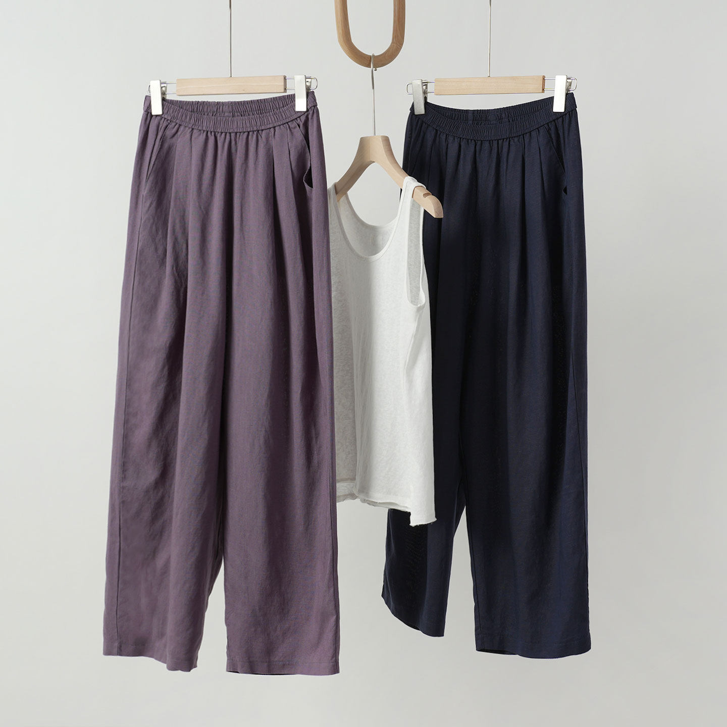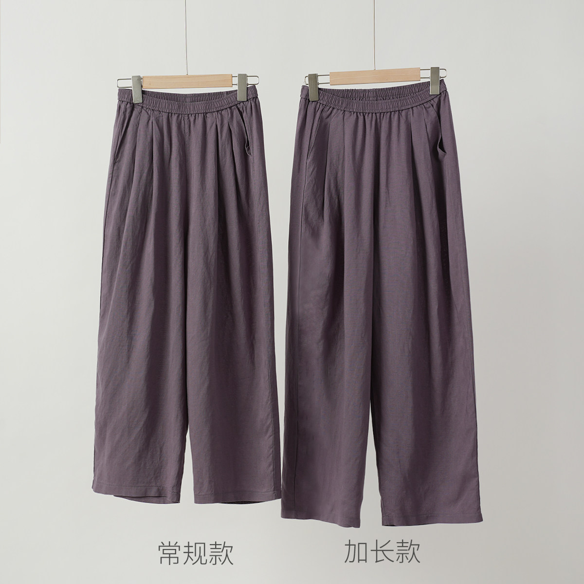 莱赛尔亚麻 温柔烟紫 172身高 夏款 女装 女士薄阔腿九分气球裤 158
