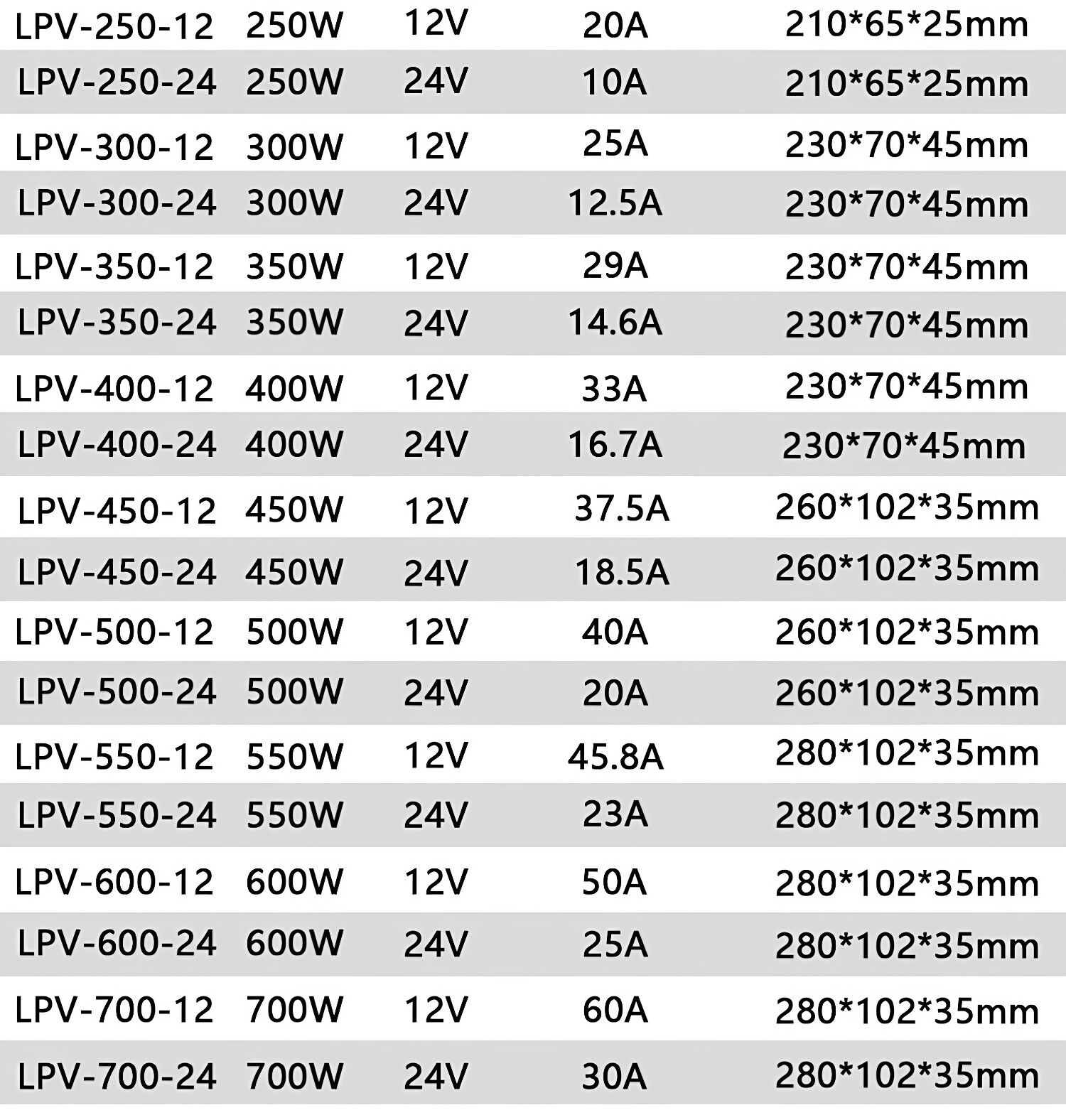 灯箱防水开关电源LPV 12v户外静音24V明纬 700W350W400W500W600W