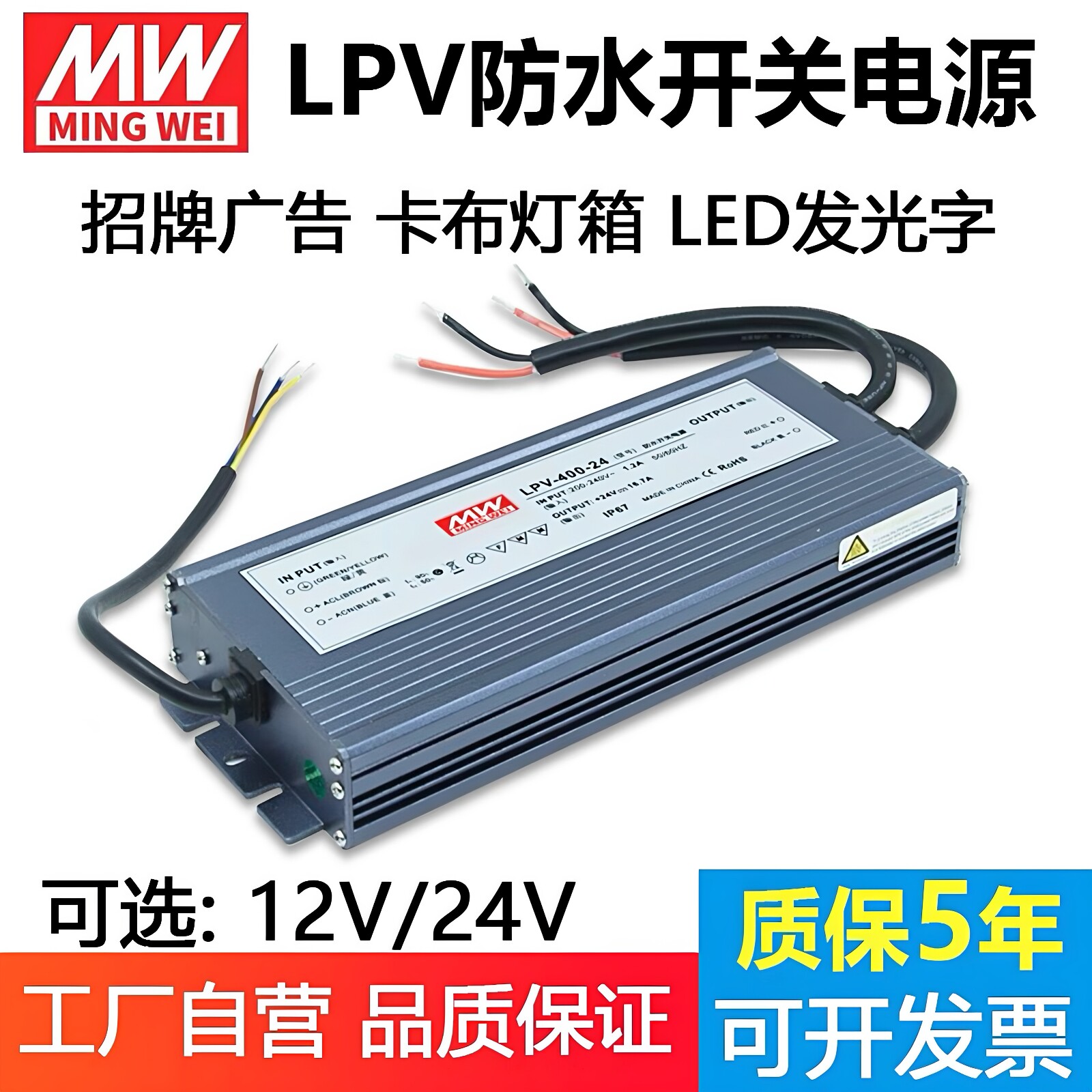 灯箱防水开关电源LPV 12v户外静音24V明纬 700W350W400W500W600W由