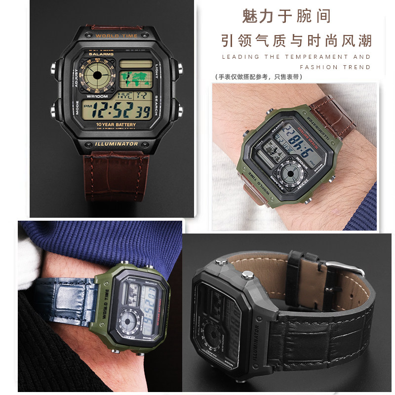 A168W A159商务真皮手表带18mm 1300 卓磊适用卡西欧小方块AE1200