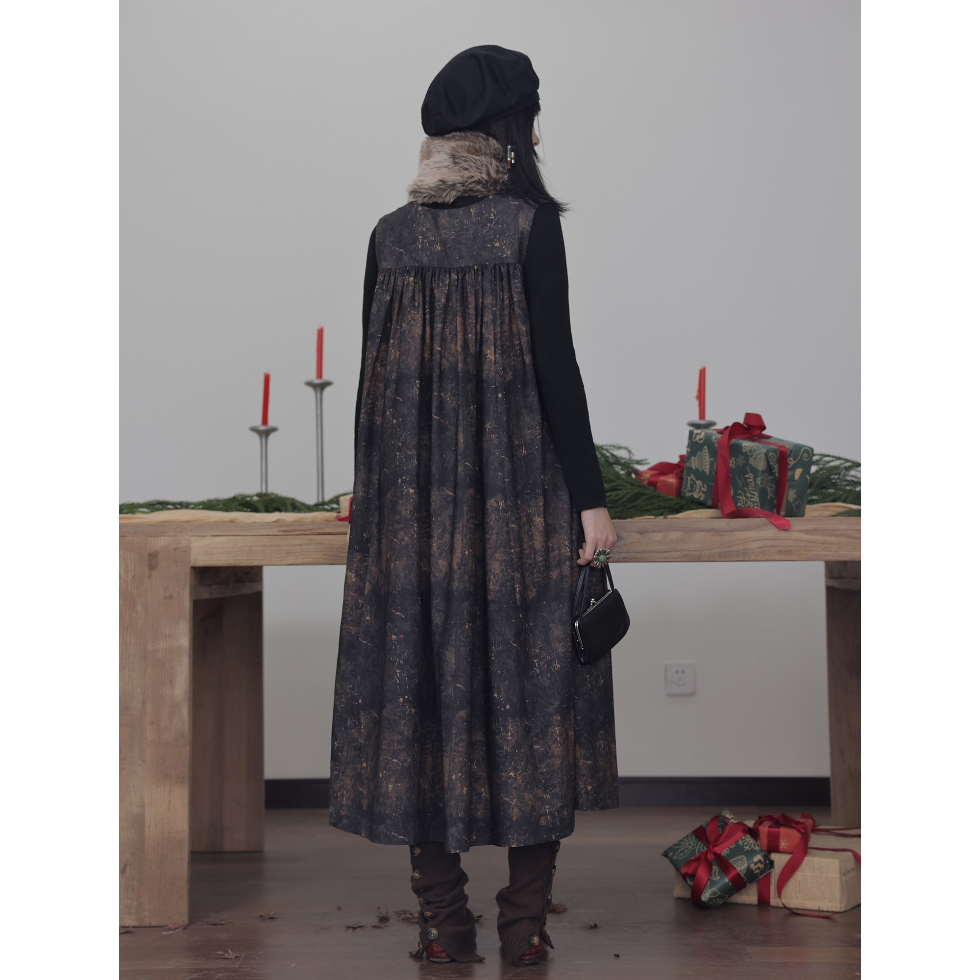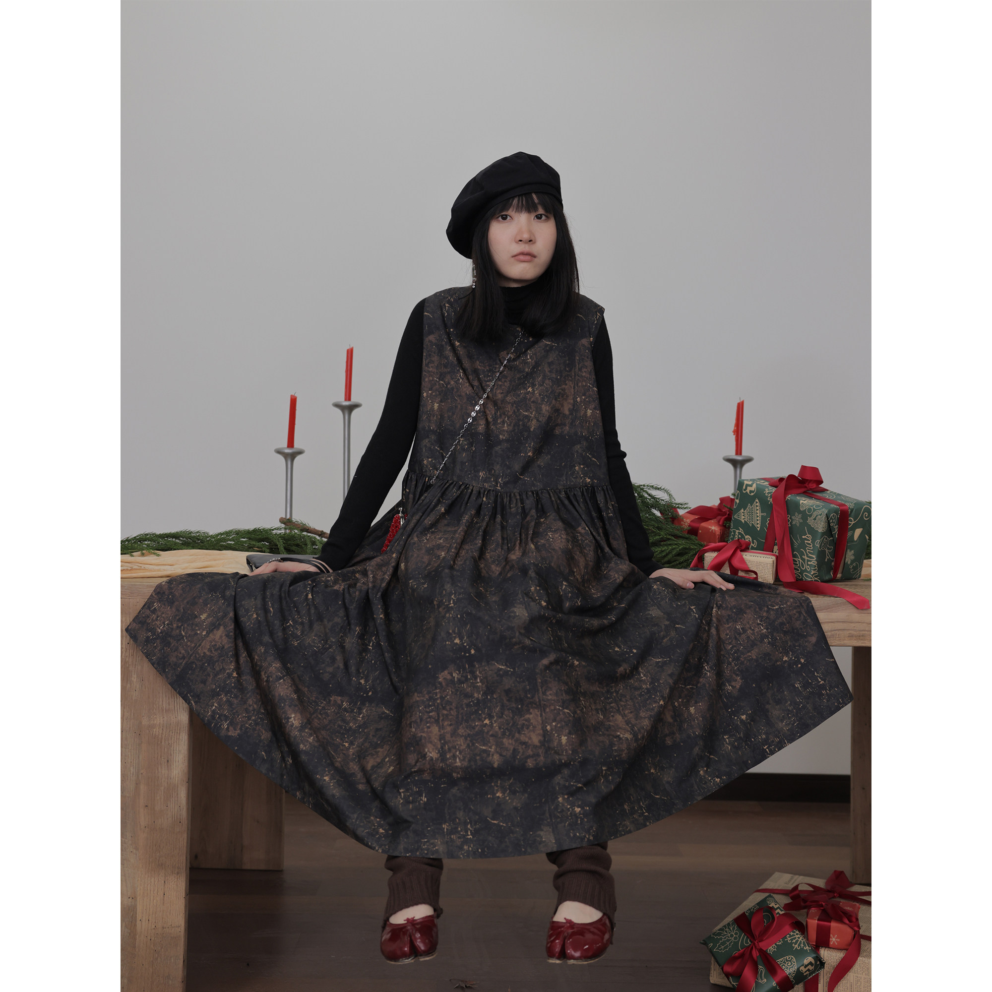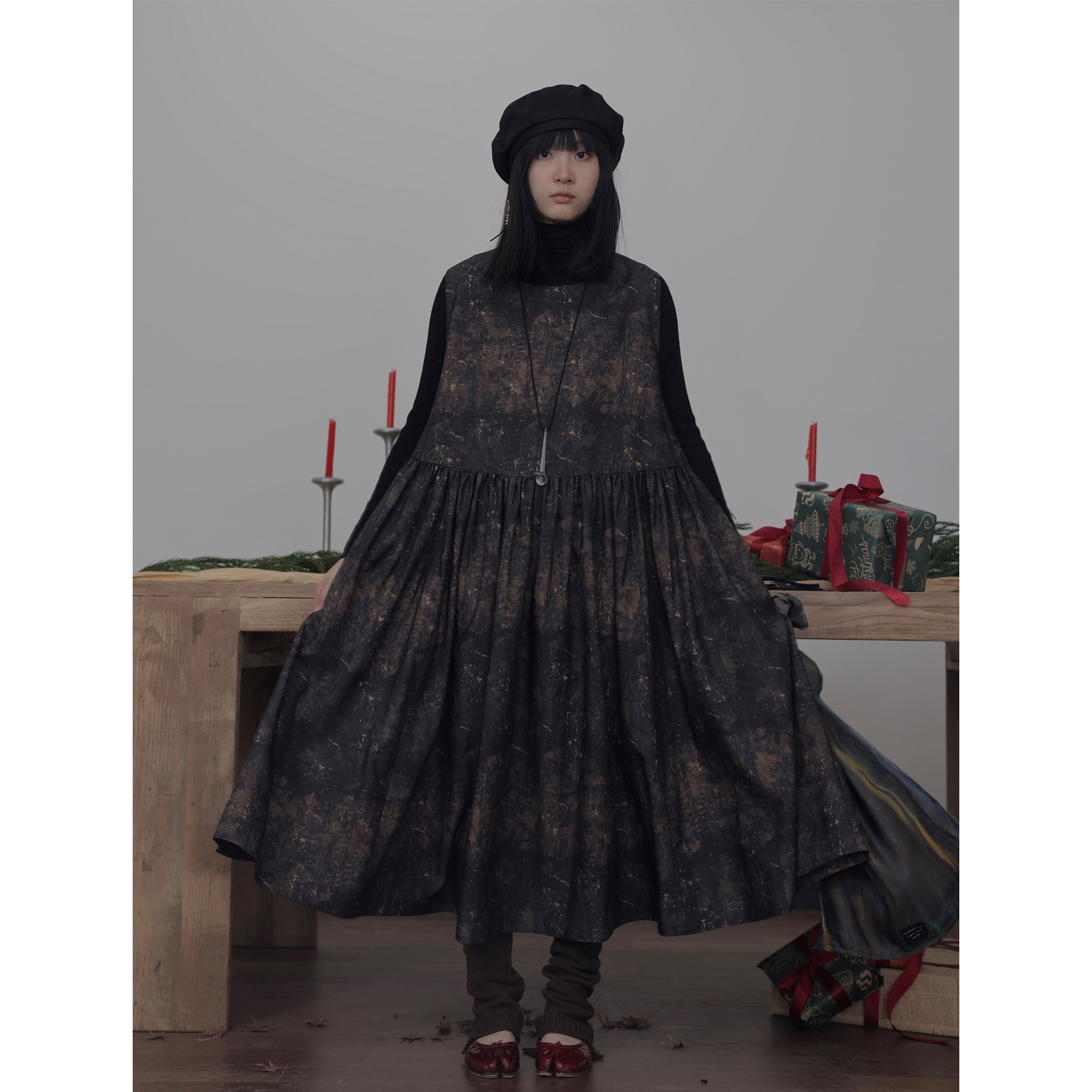 popoup23FW 无袖 前后分割无袖 背心连衣裙 斑驳油画