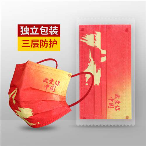 为您提供商品男女独立一次性含熔喷红三层我爱你国潮 1000只中国风防护口罩同款的详细介绍,