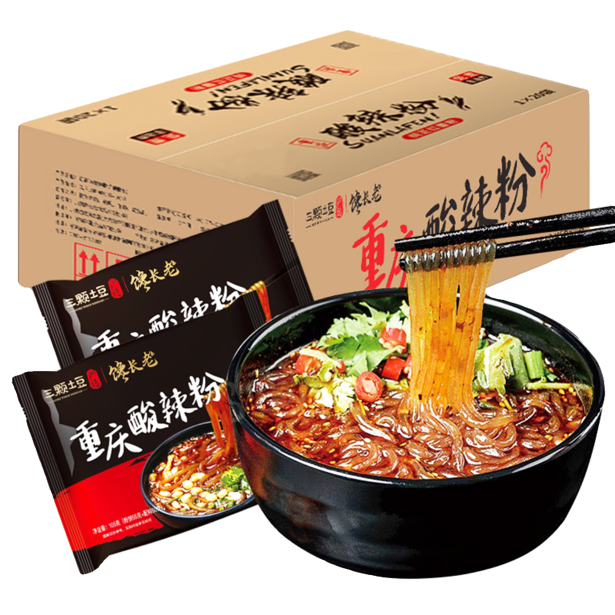 酸辣粉袋装 整箱20包重庆红薯粉丝卤蛋方便面即食酸辣粉丝米线桶装
