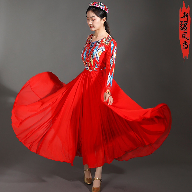 新疆舞蹈服大摆裙维族舞民族风舞台演出服艺考独舞开场表演服装