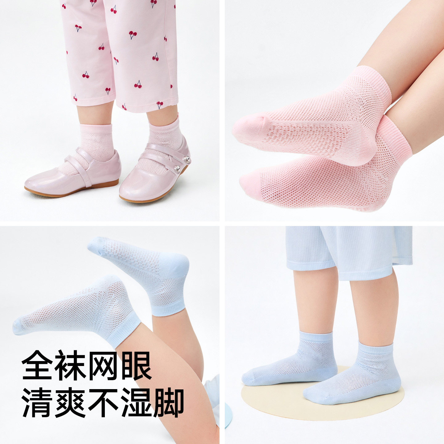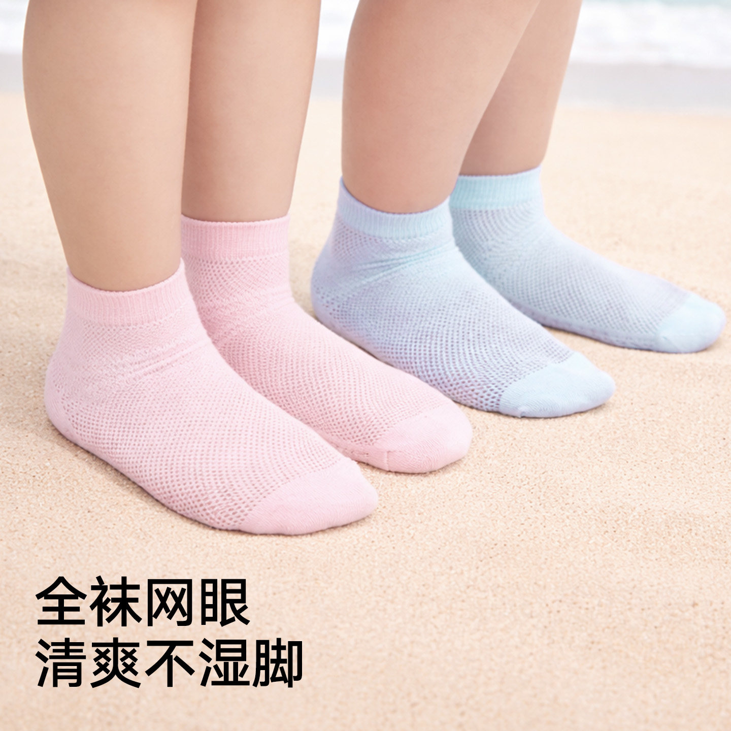 松山棉店儿童全网眼透气柔软低筒袜踩沙感男童女童棉袜春夏款