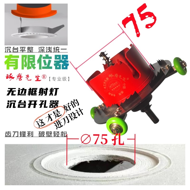 限位轮款 无边框射灯专用开孔器琢磨先生® 筒灯开孔器75mm 预埋式由