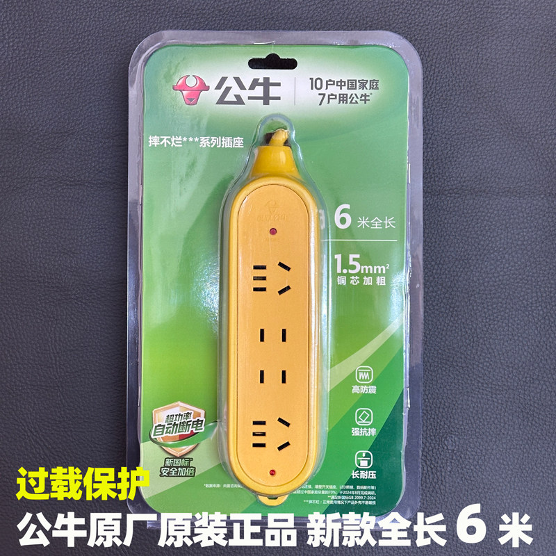 公牛插座插排家用多孔插线板儿童安全门3米5米排插过载保护接线板