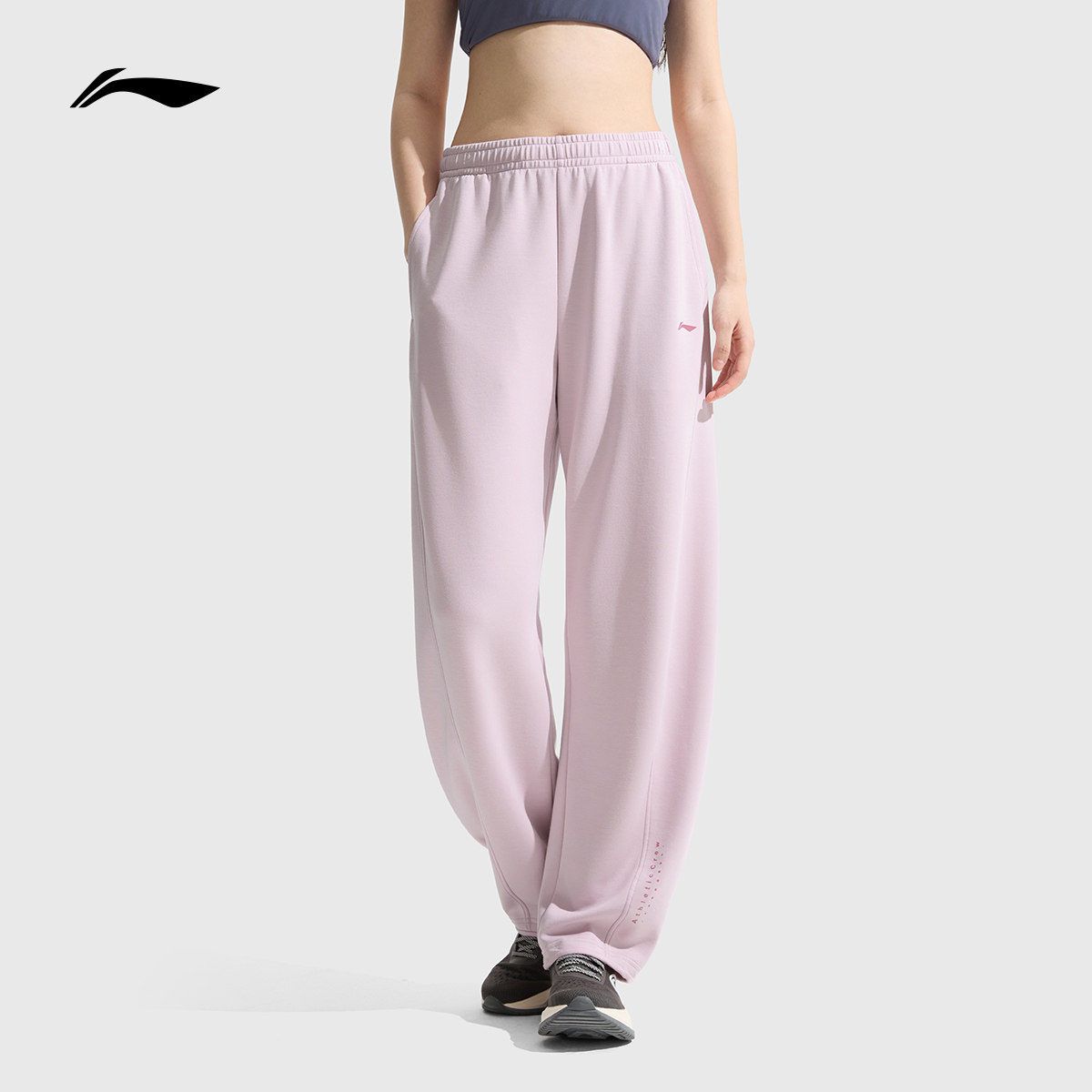 春夏宽松休闲阔腿弯刀卫裤 李宁奶芙裤 香蕉裤 女款 针织运动裤