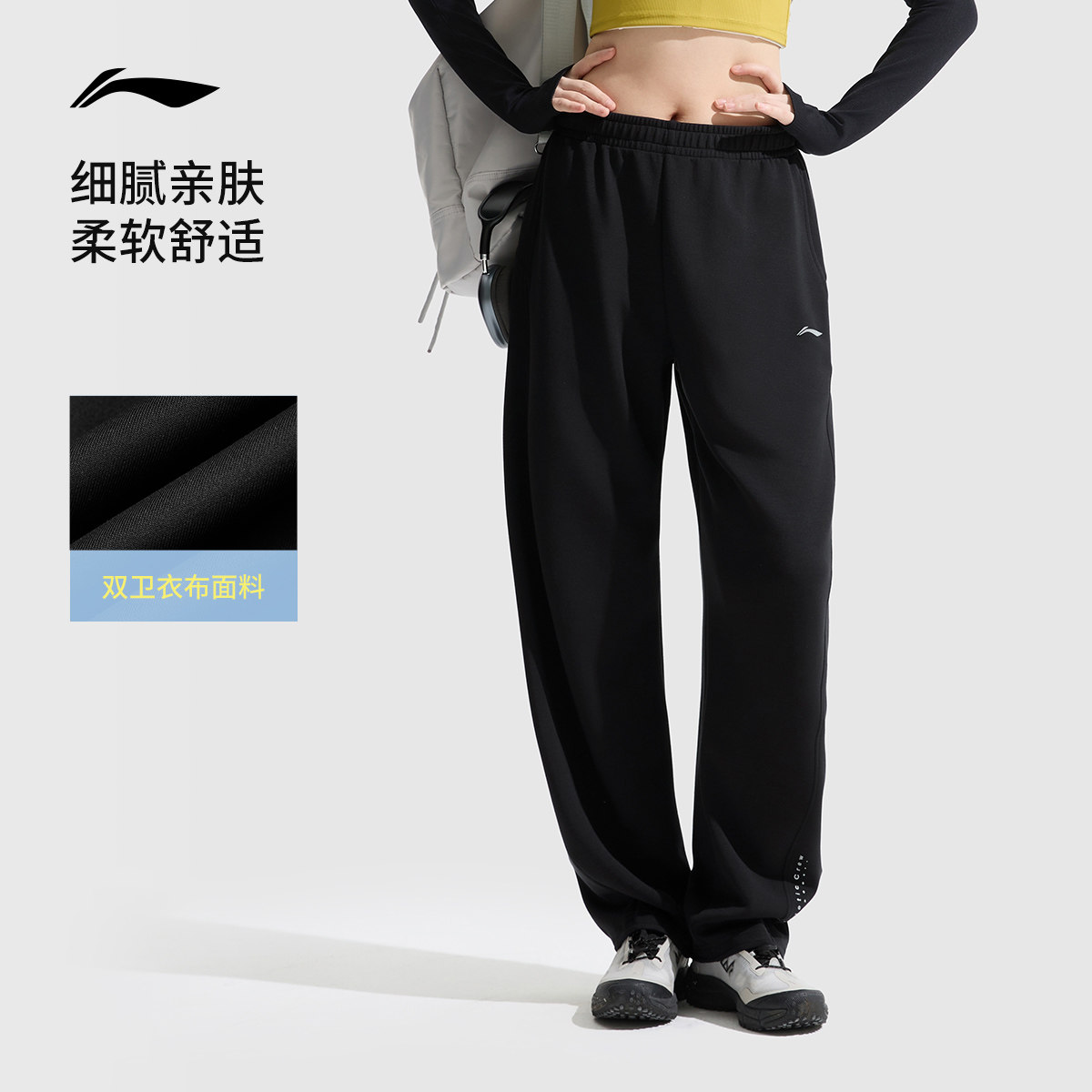 春夏宽松休闲阔腿弯刀卫裤 李宁奶芙裤 香蕉裤 女款 针织运动裤由