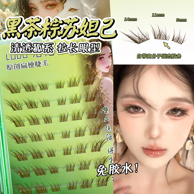 苏妲己九尾狐假睫毛免胶自粘单簇斜飞分段自然仿真持久 洛兜新中式