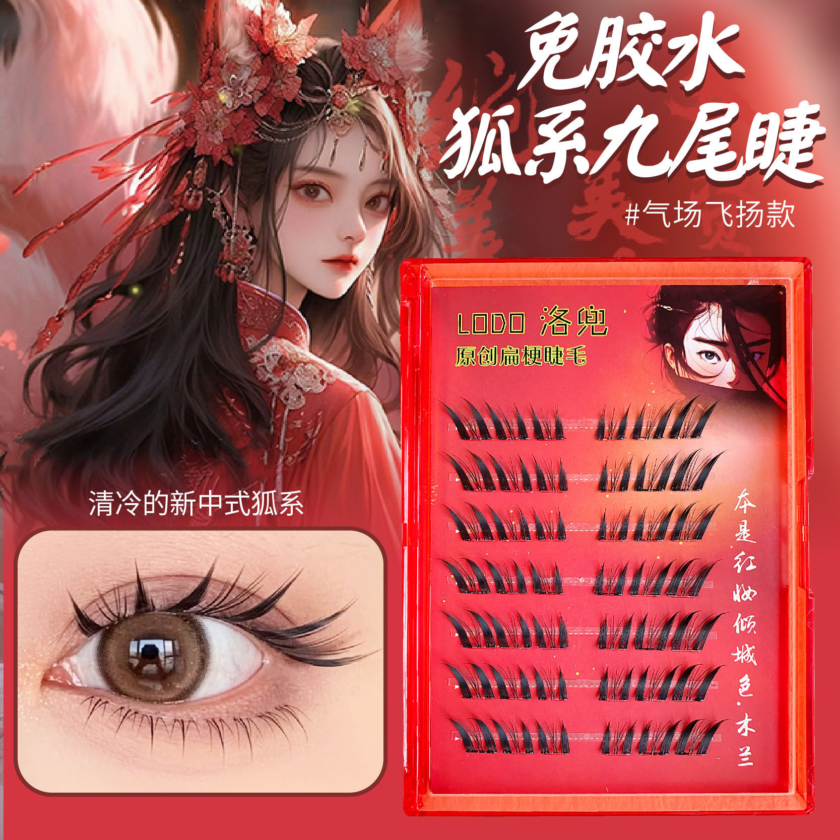 为您提供商品苏妲己九尾狐假睫毛免胶自粘单簇斜飞分段自然仿真持久 洛兜新中式的详细介绍,