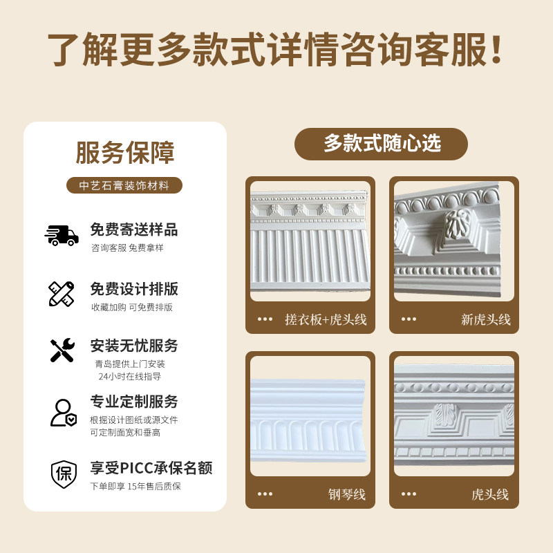 为您提供商品石膏装 吊顶造型 饰线条一体虎头线钢琴线双眼皮组合搓衣板grg法式的详细介绍,