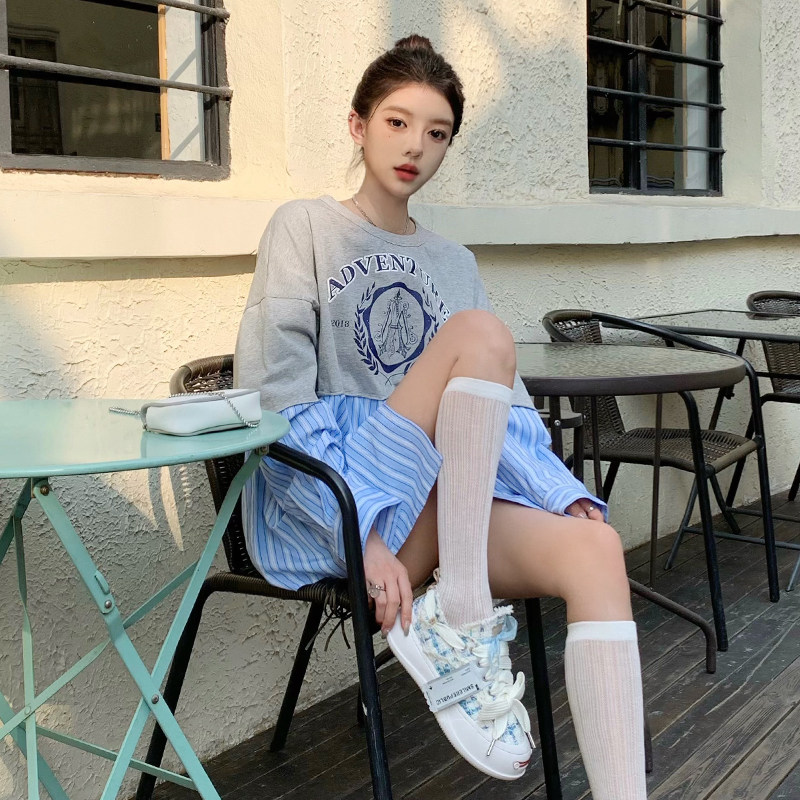 拼接复古印花条纹宽松休闲假两件衬衫 卫衣 MARTIN秋冬新款 ANDREA由