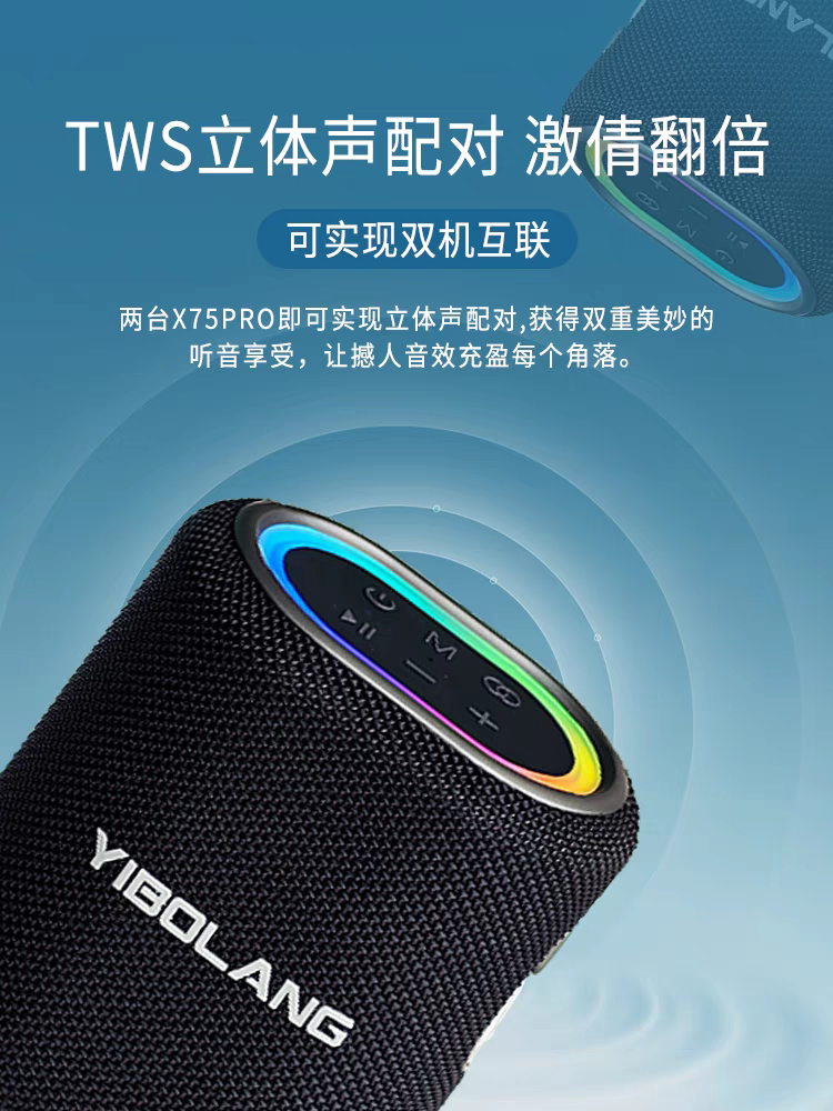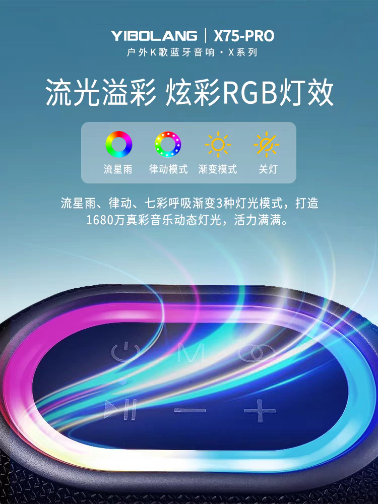 为您提供商品意博朗X75Pro户外蓝牙音响移动便携25W家用K歌带声卡带炫彩小音箱的详细介绍,