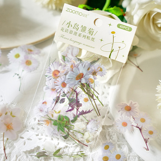 饰贴画 花语浪漫PET防水手账贴纸简约花朵植物盐系流麻手帐拼贴装